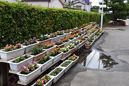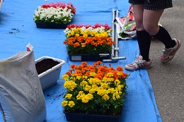 PTA花と緑の委員会による「第1回植栽事業」が6月3日(土)9:30より開催されました。吉田雅明PTA会長、北村幸恵校長、館山こずえ花と緑委員長をはじめ、保護者、生徒会や環境委員、教職員の約50名により、マリーゴールドやニチニチソウなど約300株の花苗が植えられました。約100個ほどのプランタは、野球部員が正面玄関や生徒玄関前に並べてくれました。今年は丸いプランタ10個も新たに作られました。