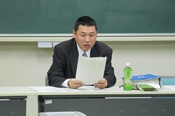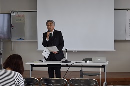 5限目の授業公開のあと、総会に先立ち、進路指導課・清水 啓より「本校の進路状況」について説明がありました。次に、教務課・盛田邦義より「Classi」に関する説明がありました。