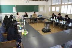 1月28日(土)にPTA役員と松任高校生徒会の役員による「意見交換会」が行われました。PTAからは、吉田雅明PTA会長、吉田久美子副会長、石谷恵子副会長の3名が、生徒会からは長谷川芹奈会長をはじめ7名の生徒会役員が参加し、活発な意見交換が行われました。