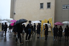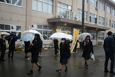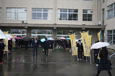 最終日。小雨が降る朝となりましたが、傘を持ち大勢の部活有志の生徒たちが立ってくれました。傘もささず、全身雨に濡れた状態で登校する生徒も見受けられ、体調を崩さないかと心配になりました。
