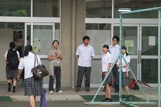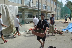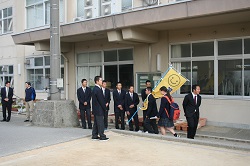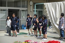 先日日曜日の強風で、グランドの砂が舞い上がり、校門付近や自転車小屋の周辺には砂溜まりができてしまいました。が、サッカー部員が月曜の朝から、掻き出す作業をしてくれたため、本日は少しきれいになった校門であいさつ運動ができました。