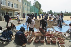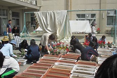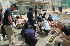 松任高等学校PTA花と緑委員会による「第1回植栽事業」が、6月4日(土)に松任高校・正面玄関にて行われました。PTA会長・吉田雅明さんの挨拶のあと、マリーゴールド、サルビア、ポーチュラカ、百日草、ベゴニアなどを130個のプランターに植えました。PTA、生徒合わせて約80名の参加がありました。