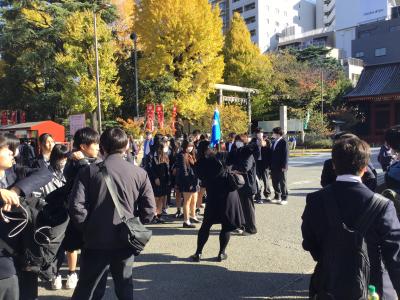 午前中は東京都内の自主研修です。班ごとに自分たちで行き先を計画して、新大久保、原宿、渋谷などを巡りました。