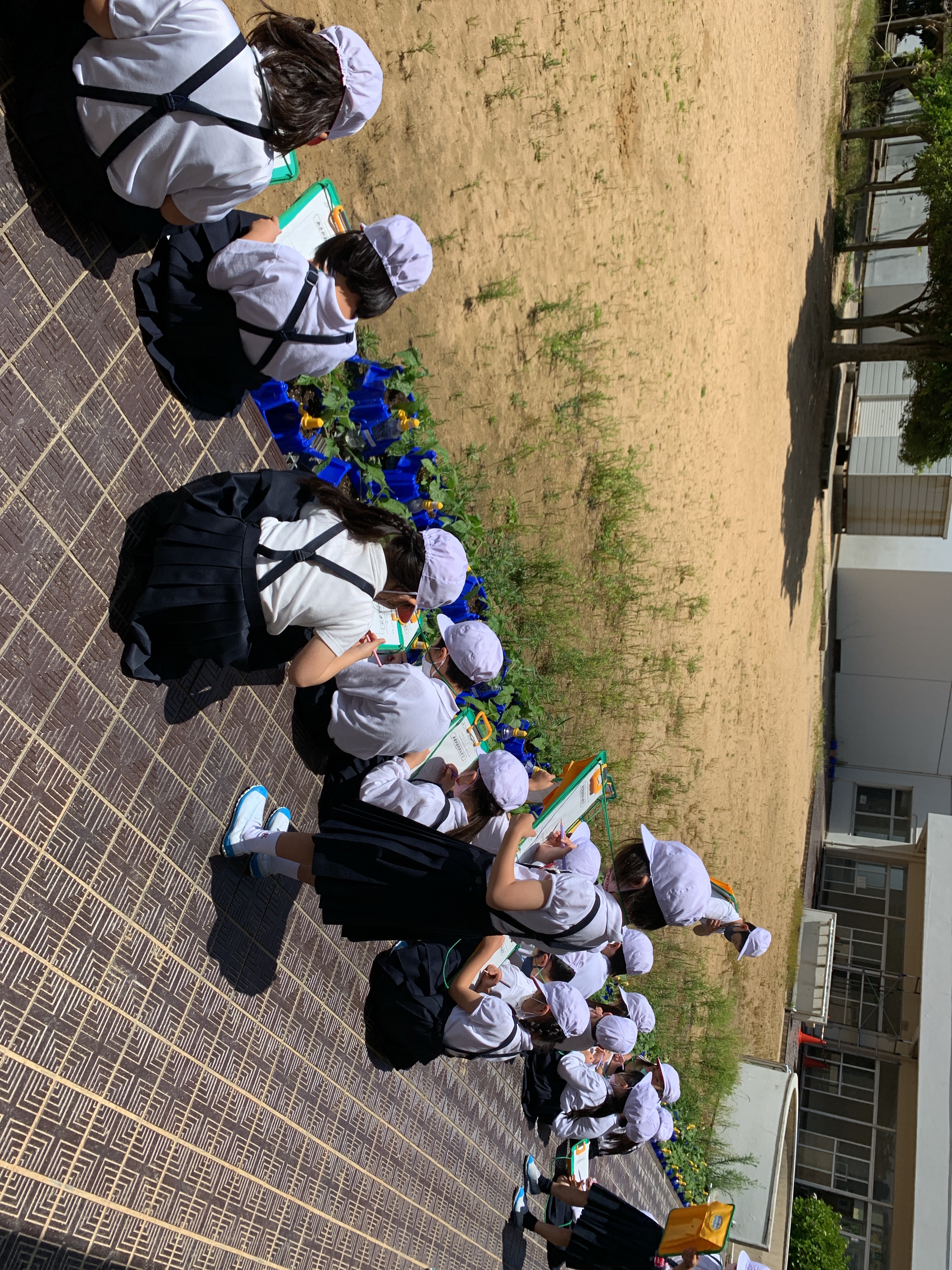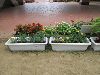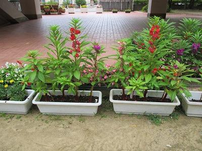 美化・環境委員会の、朝の植物への水やり。