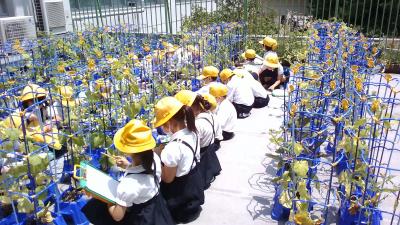 子どもたちは毎日水やりをしながら、朝顔の成長を喜んでいます。