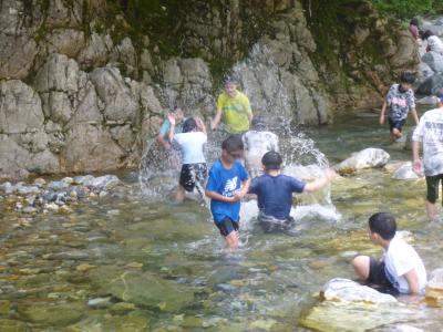 全身ずぶ濡れになりながら、思いっきり自然の中での水遊びを楽しんでいました。