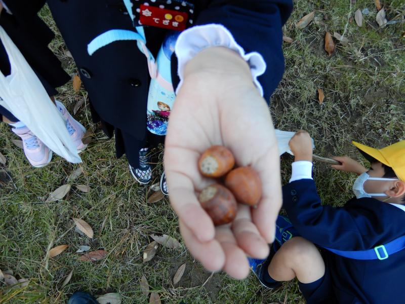 落ち葉、どんぐり、柿、トンボなどたくさんの秋のものを見つけることができました。