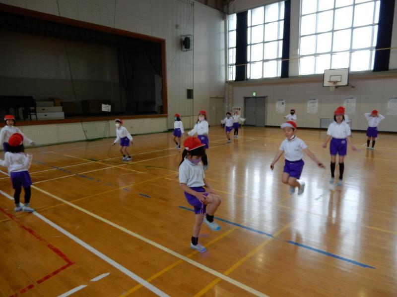 <体育(3分間走、なわとび、シャトルボール)>