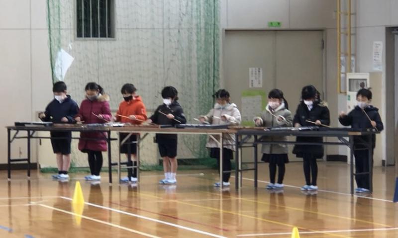 6年生に感謝の気持ちを伝えるために学年で出し物の練習をしています。