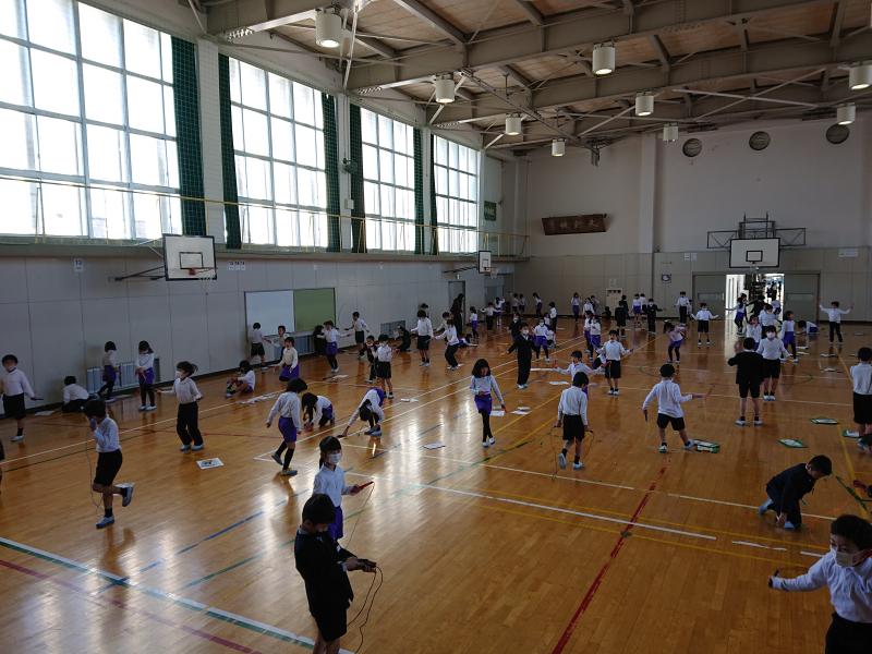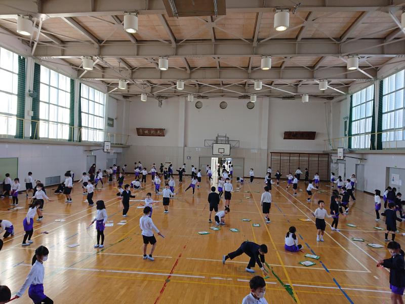 休み時間や体育の時間を使って、汗をかきながら一生懸命跳んでいます。