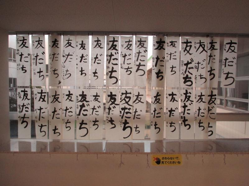 終わった後には、廊下に3クラス分掲示しました。