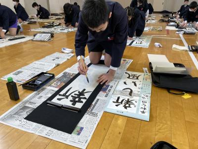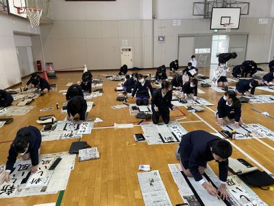 今日は、学年書き初めの会を行いました。
