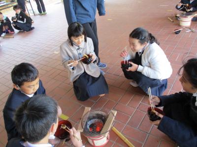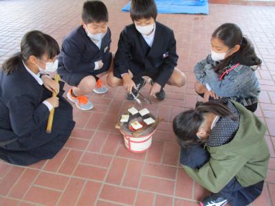 今日は、自分たちで収穫することはできませんでしたが、学習のゴールとしてお米が姿を変えたお餅を焼いて食べました。