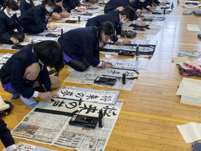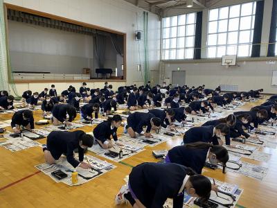 1月5日(火)に体育館にて書き初め大会を行いました。寒い体育館の中でしたが、