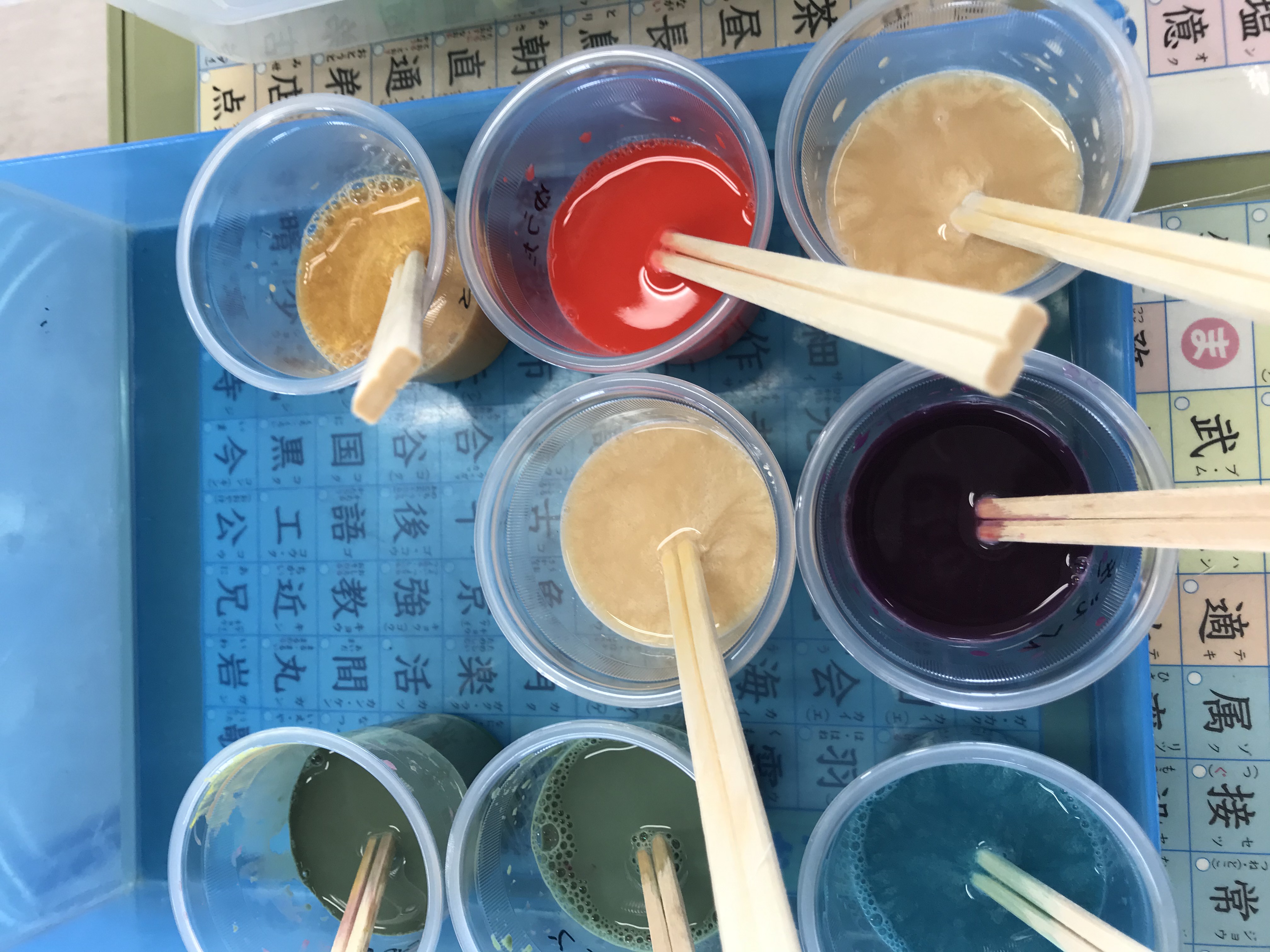 みんな 思い思いの色を いくつも作って楽しみ、 満足した表情をしていました。
