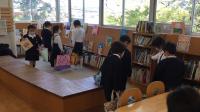 今日は「図書オリエンテーション」で、図書館司書の宮西先生から、図書館の使い方についてお話してもらいました。