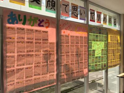 お兄さんお姉さんにお礼の手紙を書き、児童玄関前に貼らせてもらいました。