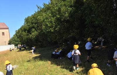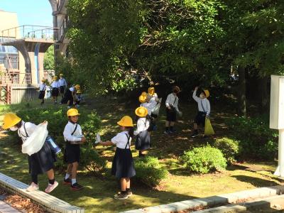 朝晩は肌寒くなり、子どもたちも季節の変わり目を感じています。生活の時間に、学校や近くの木の実公園、少し歩いて松任総合運動公園へ「あきみつけ」に出かけました。木の実公園ではどんぐりや草花・虫を見つけました。運動公園では松ぼっくりや落ち葉、アメリカフウなど、それぞれの場所でいろんな秋を見つけることができました。一人で黙々とどんぐりを拾う子や、友達と一緒に虫を捕まえる子、拾った木の実や落ち葉を分け合う姿も見られました。さわやかな秋の空気をいっぱいに吸って、のびのびと散策を楽しむことができました。