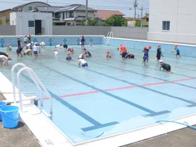 6月10日、天気にも恵まれ、絶好のプール掃除日和。