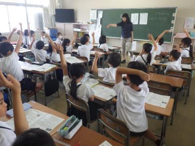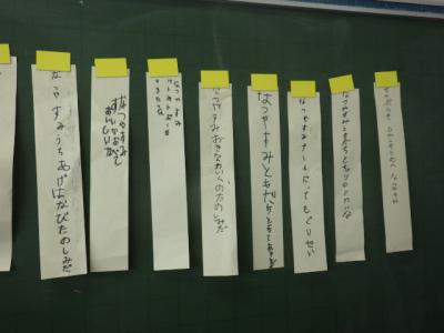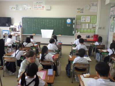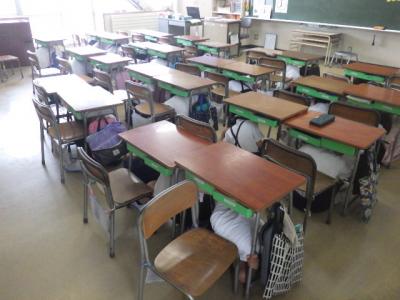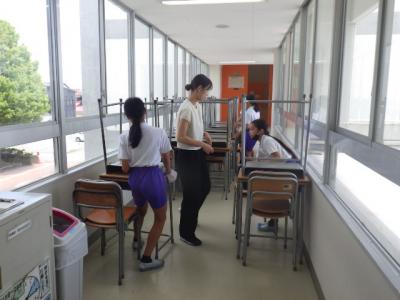 各教室では1学期を振り返ったり、夏休みの注意や連絡を聞いたり、お楽しみ会を開いたりしました(先生がハンターとなって逃走中を行った学級もありました)。夏休みから始まる改修工事のために教室を整頓したり、机・椅子を移動したりの作業も行いました。