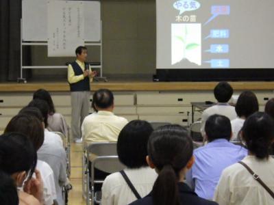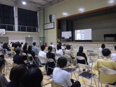 授業参観に引き続き、教育講演会が行われました。多賀クリニック院長の多賀千之様を講師にお招きし、「子ども達のやる気スイッチを入れる」のご講演をいただきました。講演では、子ども達の「やる気」を木の苗に例え、成長のためには「土=甘えさせる」「水=傾聴」「肥料=ありがとう」「太陽=夢・経験を語る」が大切であると教えていただきました。今日からの子育て・教育に活かしていきたいと思います。多賀先生、本当にありがとうございました。また、講演会には約110名の方の参加をいただきました。保護者の皆様、お忙しい中ありがとうございました。