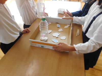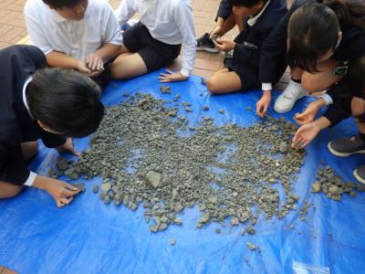 6年生が理科の授業の一環として化石発掘体験に取り組みました。この授業は白山ろく少年自然の家の企画で、スタッフの皆さんに講師を務めていただきました。はじめに、白山手取川ジオパークの化石発掘のお話を中心に、化石についての講義を受けました。次の時間に、化石の発掘体験です。子どもたちは目を凝らしながら石の中に隠れている「葉っぱ」や「木」を探し出し、次々に発掘していきました。これもジオ学習の一環です。貴重な体験でした。