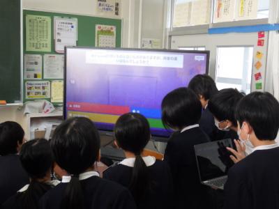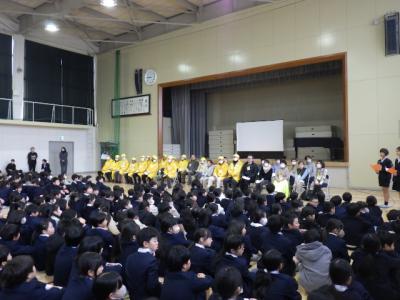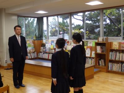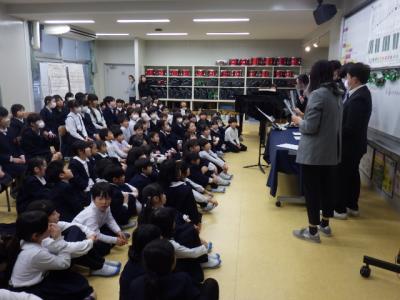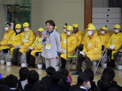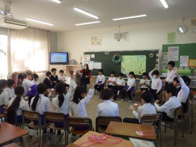 12月9日(水)、5年生を対象に「和食のしつらえ」の授業を行いました。給食食器製造の最大手である「三信化工(東京都に本社)」様より、社長の増田様と講師の海老原様にお越しいただき、和食器に関するお話を聞きました。模様に込められた意味や気持ちを考えることなどを通して、日本や海外の文化のよさに共感し取り入れる大切さを知ることができました。海老原様の語りと興味深い内容に、5年生の子どもたちは引きこまれるように話を聞いていました。お話の後、5年1組が代表して、和食器に盛り付けられた給食を、和の空間で味わう、「和食のしつらえ」を体験できました。お話を伺うと石川県で児童相手に授業を行うのは本校が初めてとのことでした。貴重な食育の機会となりました。本当にありがとうございました。