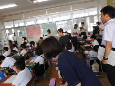 研究授業(3年) 2023年7月5日 18時04分 続きを読む ご存じの方も多いかとは思いますが、学校では「研究授業」といって、先生方の授業力の向上のために授業を参観する機会を設けています。参観後はそれぞれの気付きや意見を交換します。言い換えれば先生方の学び合いです。今日の研究授業は3年1組の「わり算」でした。子どもたちはよく考え、たくさん発表できた授業でした。「研究授業」を通して得られたことを、各先生方の授業に活かしていきたいと思います。 閉じる