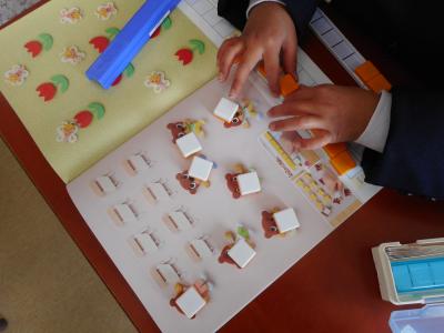 ハンズオン・マス 2023年4月24日 19時01分 続きを読む 1年生の算数です。くまさんが全員椅子に座ることができるかをブロックを置いて調べています。1対1対応は算数にとって基礎になる考え方であり、1年生では手を動かして物を使って身に付けていきます。「手を使って考える算数=ハンズオン・マス」で、楽しく算数を進めています。 閉じる