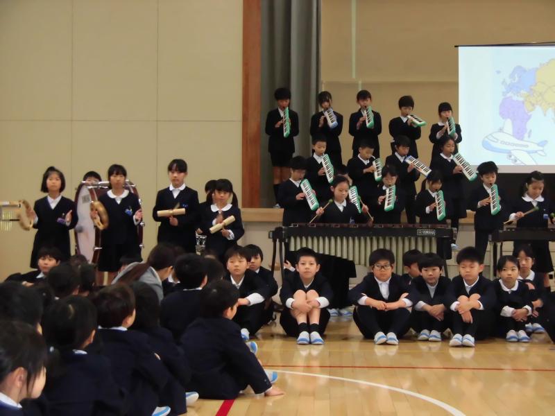 次に、楽器グループとリコーダーグループによる「小さな世界」の合奏をしました。