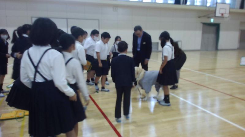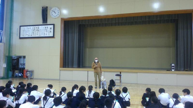 10月27日(金)には、盲導犬を連れた視覚障害のある方が来校し、障害や盲導犬についての学習をしました。