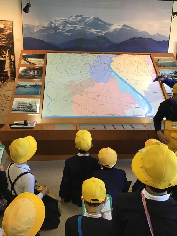 子どもたちは、「あくどのふちは、今の白山道の駅のあたりなんだ」や「昔の白山比咩神社は、今よりも下のところにあったんだ」「手取川が暴れ川と呼ばれている跡があった」など、様々な気づきがあったようです。