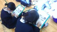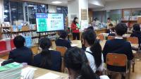 国語科の授業で、クラスごとに図書館で鶴来先生と一緒に統計資料の読み方について学習しました。