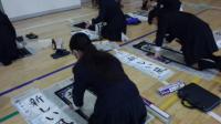 さて、3学期初日の今日は、5年生全員で書初め会を行いました。