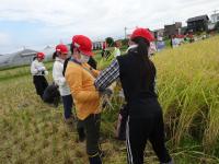 体験後の振り返りでは,「昔の人は機械がなくて,手作業だからとても時間がかかり大変だったと思った。」「初めての鎌で稲を刈る感じ,初めて持った稲の重み,とても良い体験になった。」「みんなで刈った稲を干した景色を見て達成感を感じた。」等,体験したからこそ感じられた思いをふり返っている人が多くいました。