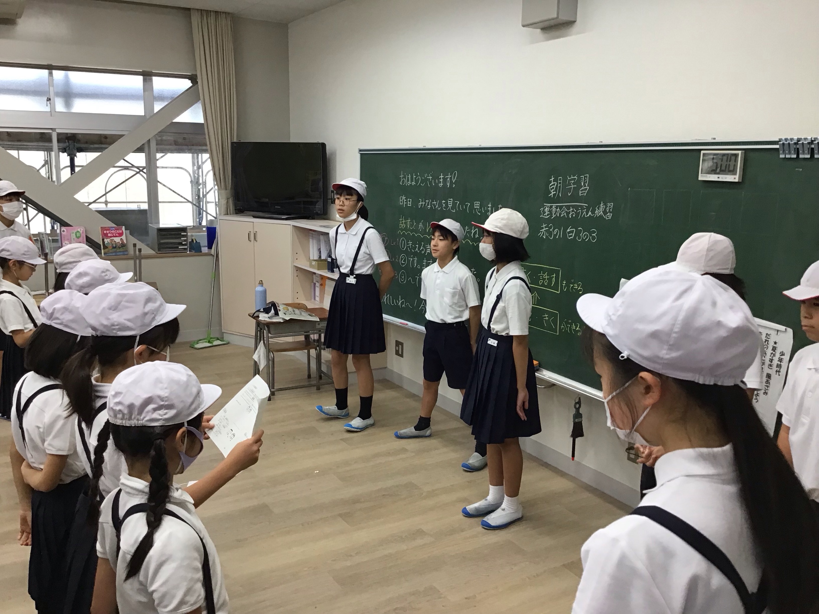 その後、12日から始まった応援練習では、5・6年生の子どもたちが1~4年生の下級生に向けて分かりやすいように応援の仕方を教えたり、お手本を見せたりしていました!短い時間の中で、濃い練習ができるよう、応援団を中心にがんばっています。