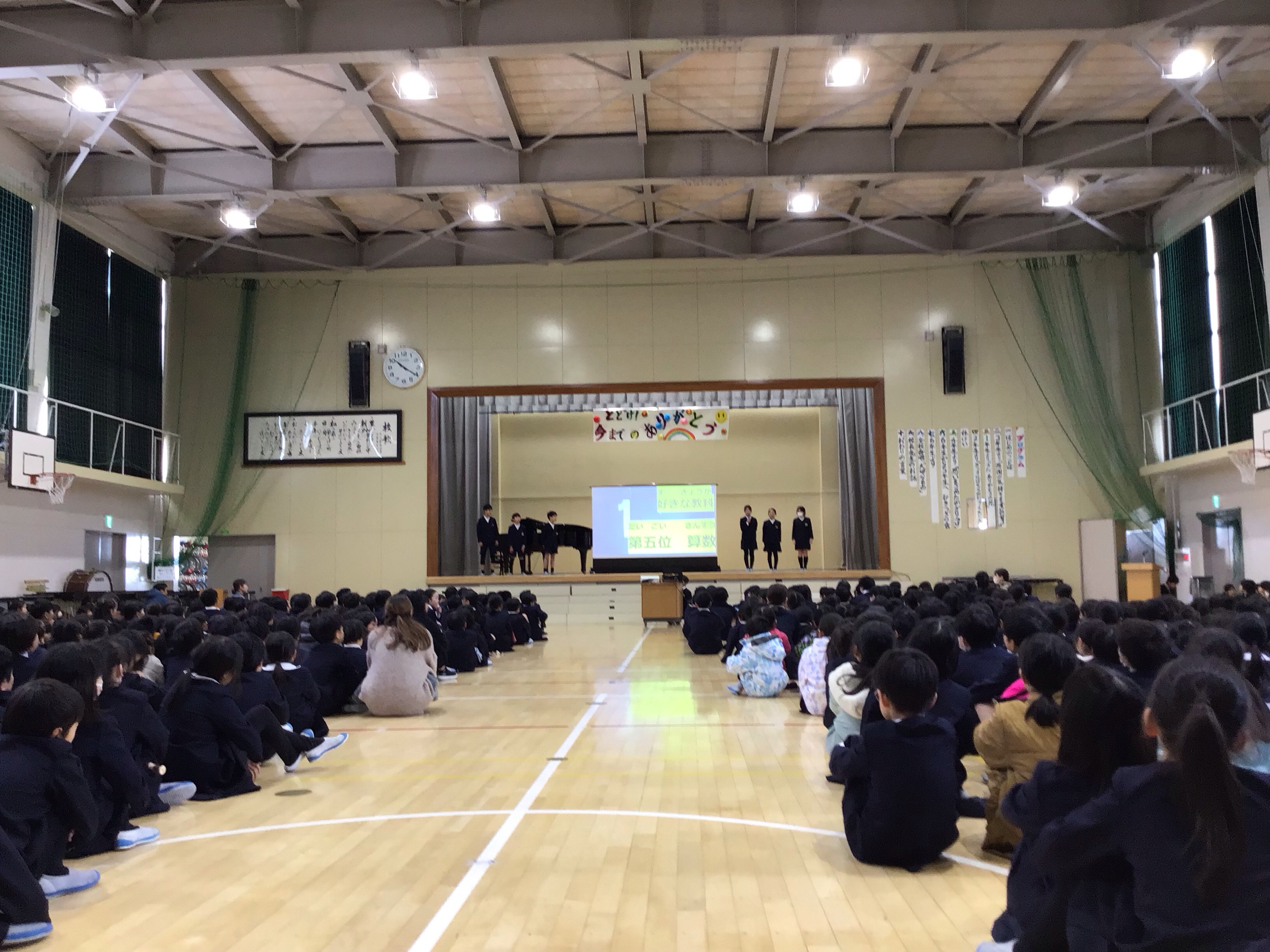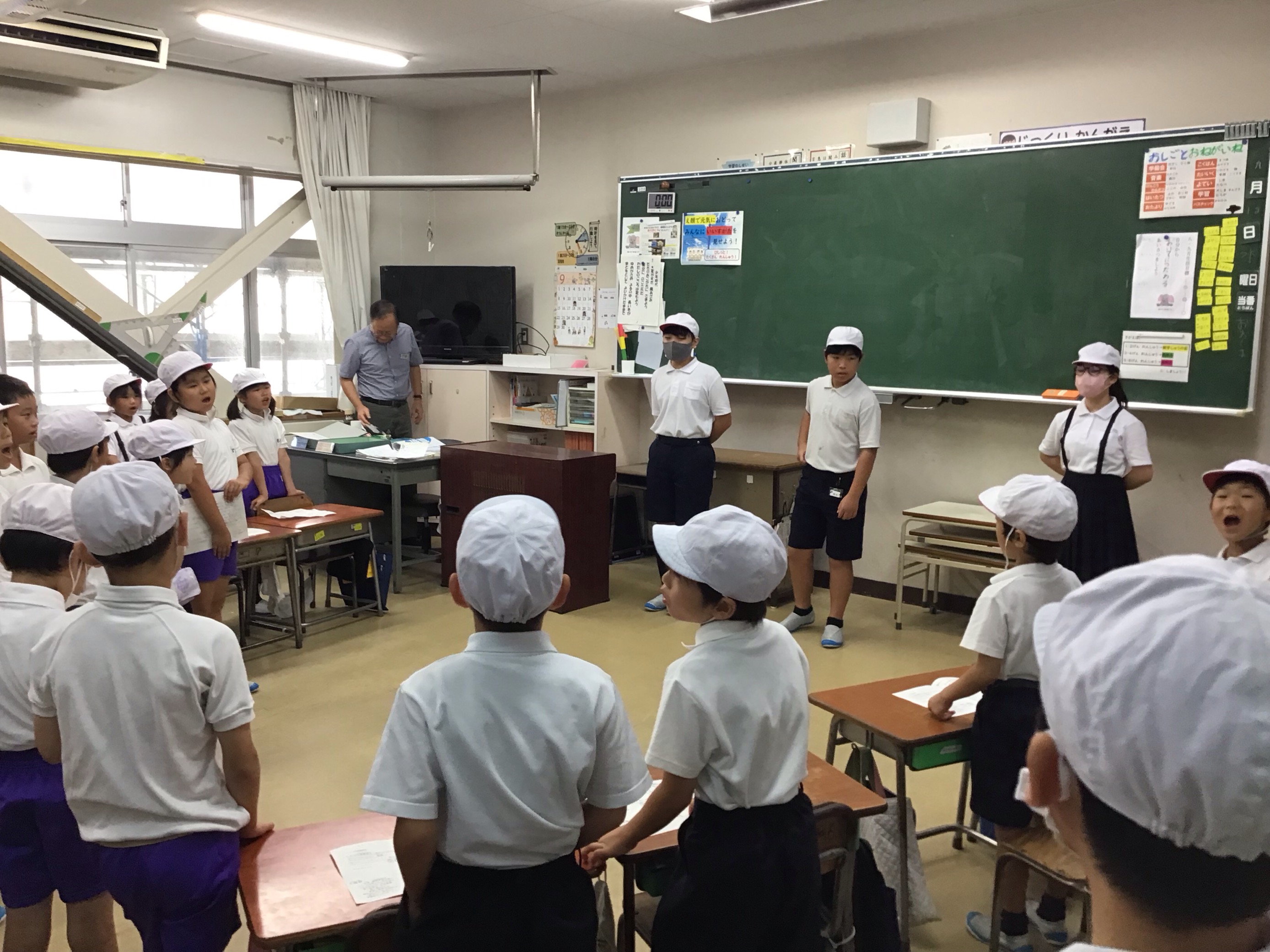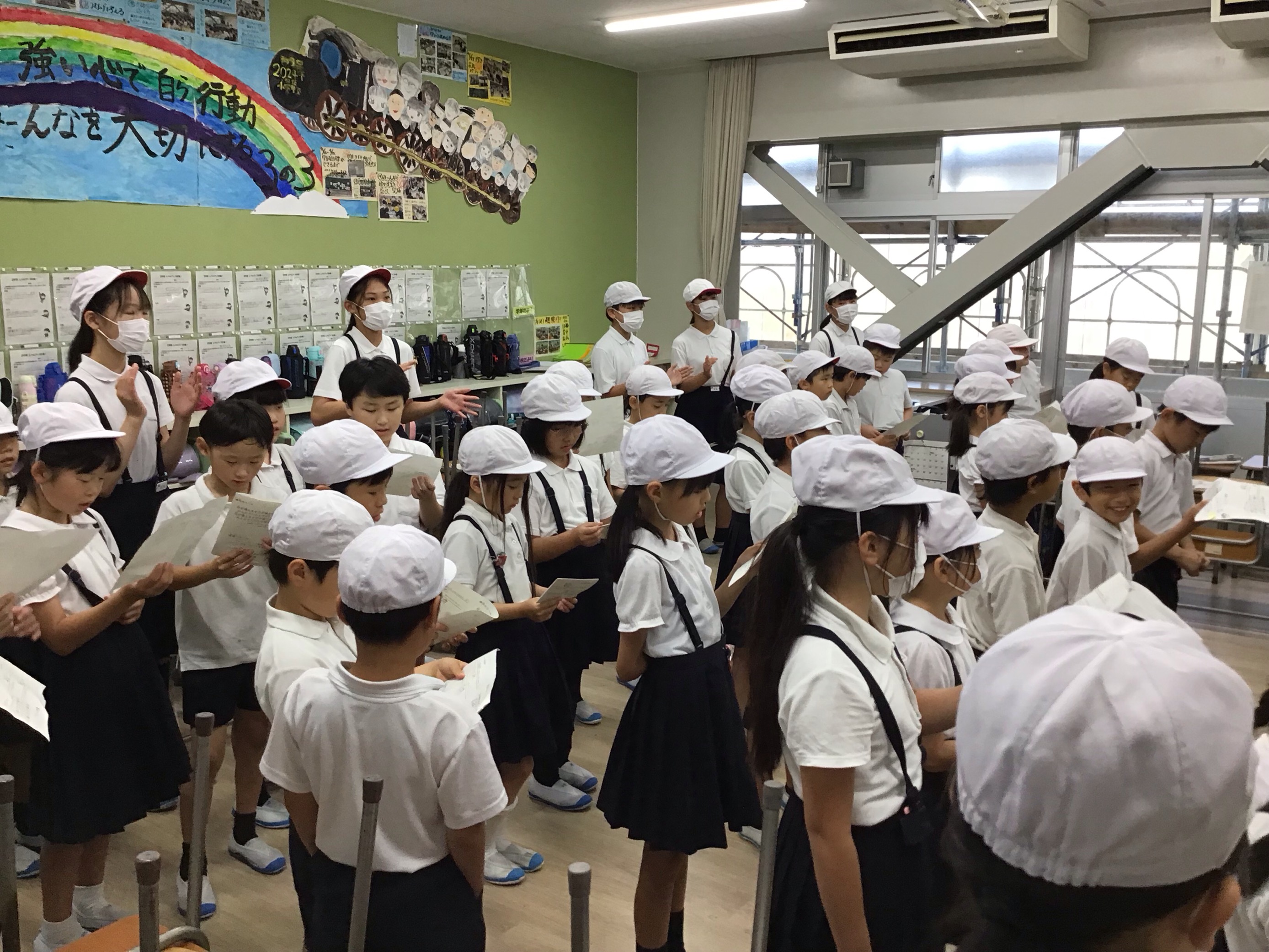児童集会では、前期代表委員への感謝と、後期代表委員へのエールが送られました。