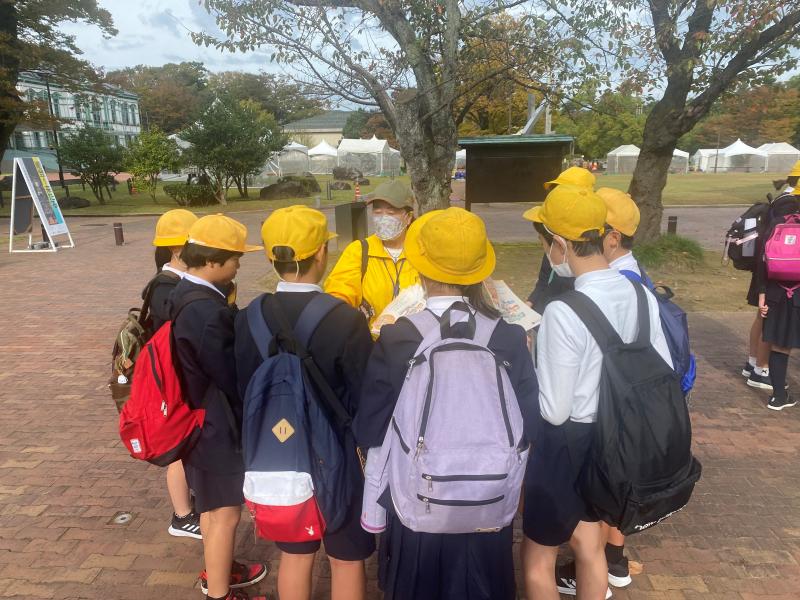 当日、石川県立歴史博物館や兼六園、金沢城を、ガイドボランティア「まいどさん」に案内してもらいました。