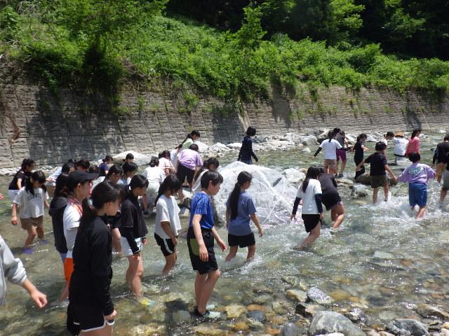 2日目には、イワナつかみを行ったあと、川遊びをしました。