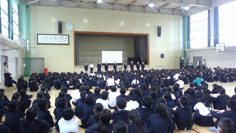 1日に全校朝会を行いました。