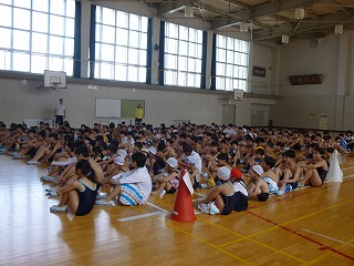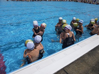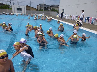 ふれあいプール、楽しかったよ! 2019年7月8日 18時22分 [先生] 7月8日(月)、6年生と一緒にプールに入りました。まずは体育館に集合し、お話を聞いてからみんなで準備体操です。そして、いよいよプールへ。2学年が入るので、プールサイドは人でぎっしりです!プールでは、みんなで“洗濯機”をして遊びました。水の流れはとっても速かったですが、6年生が1年生をおんぶや抱っこをしてくれたので安心!みんなニコニコでした!6年生のみなさん、ありがとうございました!!!