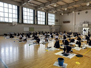 書き初め大会では、一年の始まりに字をきれいに書くことの大切さを子どもたちに伝え、みんなとても真剣に集中して字を書いていました。