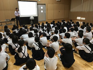 総合 ジオについての話を聞きました 2018年5月8日 18時12分 [先生] これから総合の学習でジオパークについて学習し、まとめ、全校児童に発表していきます。その第一歩として、ジオパーク・エコパーク推進室の方に、ジオパークのことを教えてもらいました。子どもたちは真剣に話を聞き、調べ学習に行くことを楽しみにしている様子でした。