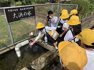 ジオ遠足~美川編~ 2018年9月26日 20時29分 [先生] 少し風が強い日でしたが、いい天気の中、美川に行ってきました。ルーツ交流館では、仏壇や刺しゅう、おかえり祭の話を聞きました。その後水門を見たり、加工場を見たりして、美川港の様子も見学しました。湧き水巡りをし、飲み比べをしました。こっちの方が…あっちの方が…と味わいながら飲んでいました。ジオ遠足は白峰、鶴来、美川と3か所行きましたが、それぞれに土地を活かした特徴がありました。これからまた新聞等にまとめていきます。