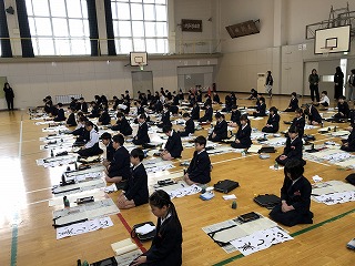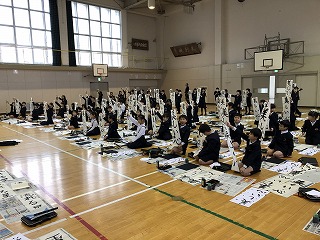 書きぞめの文字「美しい心」で、3学期もさらに成長してくれることを楽しみにしています。