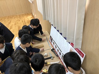ししまい学習 2019年3月20日 17時29分 [先生] 前のことになってしまいましたが、3月8日にししまい学習がありました。石同新町のししまい保存会のみなさんに来ていただき、ししまいの歴史や受けつぐ方の思いなどを、動画を交えて教えていただきました。道具を見せて頂いたり、体験させていただいたりして、ししまいへの興味がさらにでてきた子供たちでした。