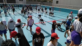 5年生みんなの力を合わせて綺麗にしたプールのおかげで、全校のみんなが水泳の授業を安全に行うことができます。また、今年の水泳の授業は、自分たちの力で掃除をしたこともあり、今までとは違った充実感をもって取り組むことができそうですね。