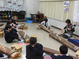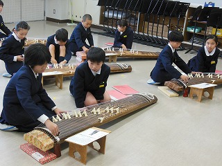 箏体験をしました! 2018年12月14日 16時36分 [先生] 12月13日(木)、14日(金)に「箏体験 」がありました。 音楽の時間に「箏」について学んできました。今回は、学んできた知識も活かしながら、箏の先生に教えていただき演奏する体験をしました。 真剣な表情で取り組む姿がたくさん見られ、子どもたちにとっても思い出に残る体験になったのではないかと思います。 ご指導いただいた西川先生、高畠先生、貴重な体験をありがとうございました。