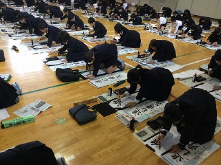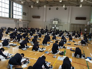 5年生と6年生が合同で行った「書初め会」では、一人ひとりが新年の抱負を持ち、心を込めて「進む勇気」を書くことができました。取り組む姿勢や集中力は、「さすが高学年」。とても素晴らしかったです。