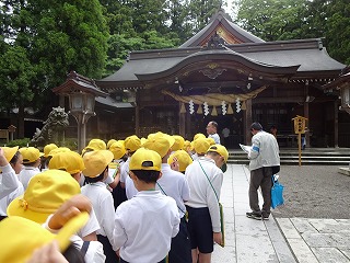 この日は天気に恵まれ、美川の町を歩いたり、バスに乗ったりしながらまわることができました。湧き水が出ているところでは冷たい水を飲んで「おいしい!」と感動している子ども達でした!また美川地区では「はりんこ」と呼ばれている「トミヨ」の増殖池では、興味津々に池をのぞく子どもたち。美川地区でしか体験できないことがたくさんできた日になりました!